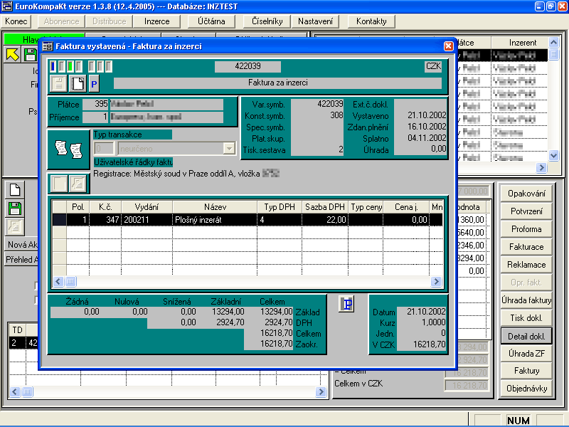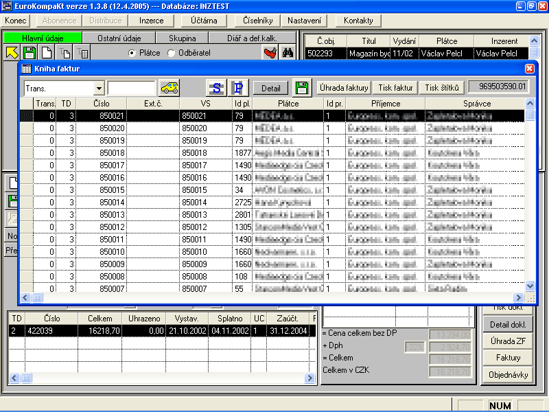 Je komplexní aplikace typu klient-server pro správu a fakturaci inzerce. Součástí SW je: