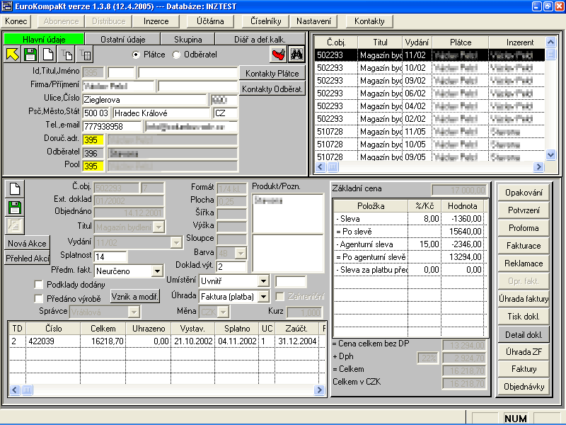 Je komplexní aplikace typu klient-server pro správu a fakturaci inzerce. Součástí SW je: