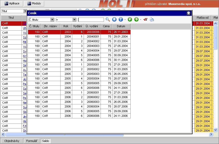 Webová aplikace MOL je určena ke vzdálenému připojení klienta prostřednictvím Internetu k centrální databázi předplatného tisku. Je určena pracovníkům vydavatelství, inspektorům, obchodním zástupcům či operátorům dislokovaného call centra.