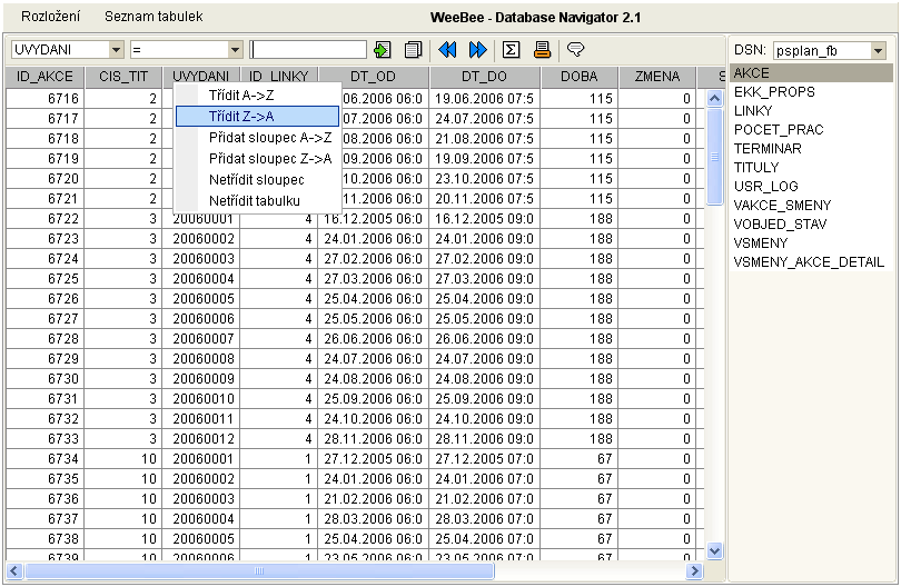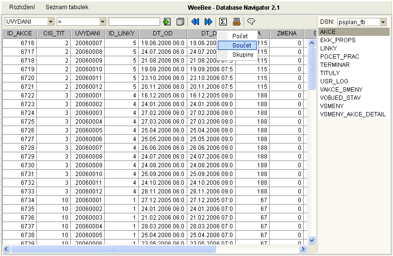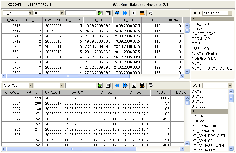 WeeBee je univerzální průzkumník SQL databází. Umožňuje prohlížet všechny tabulky a pracovat s nimi. Podporuje: